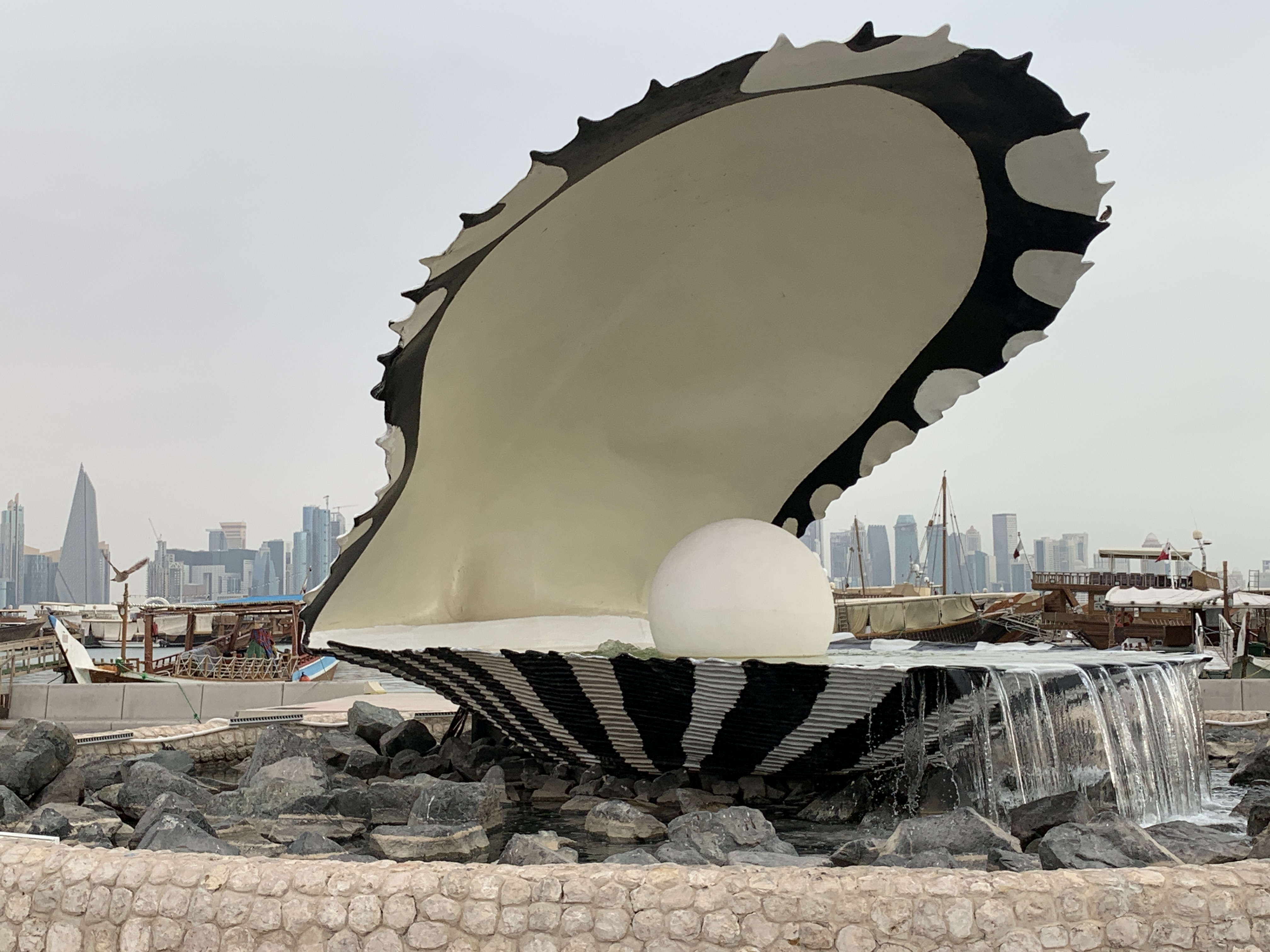 Qatar's primary source of "wealth," prior to the discovery of oil and natural gas, was pearl diving, a very dangerous occupation that would take men from the community away from their homes for 4-5 months every year. To celebrate this history, there is a very LARGE clam with a pearl in Doha.